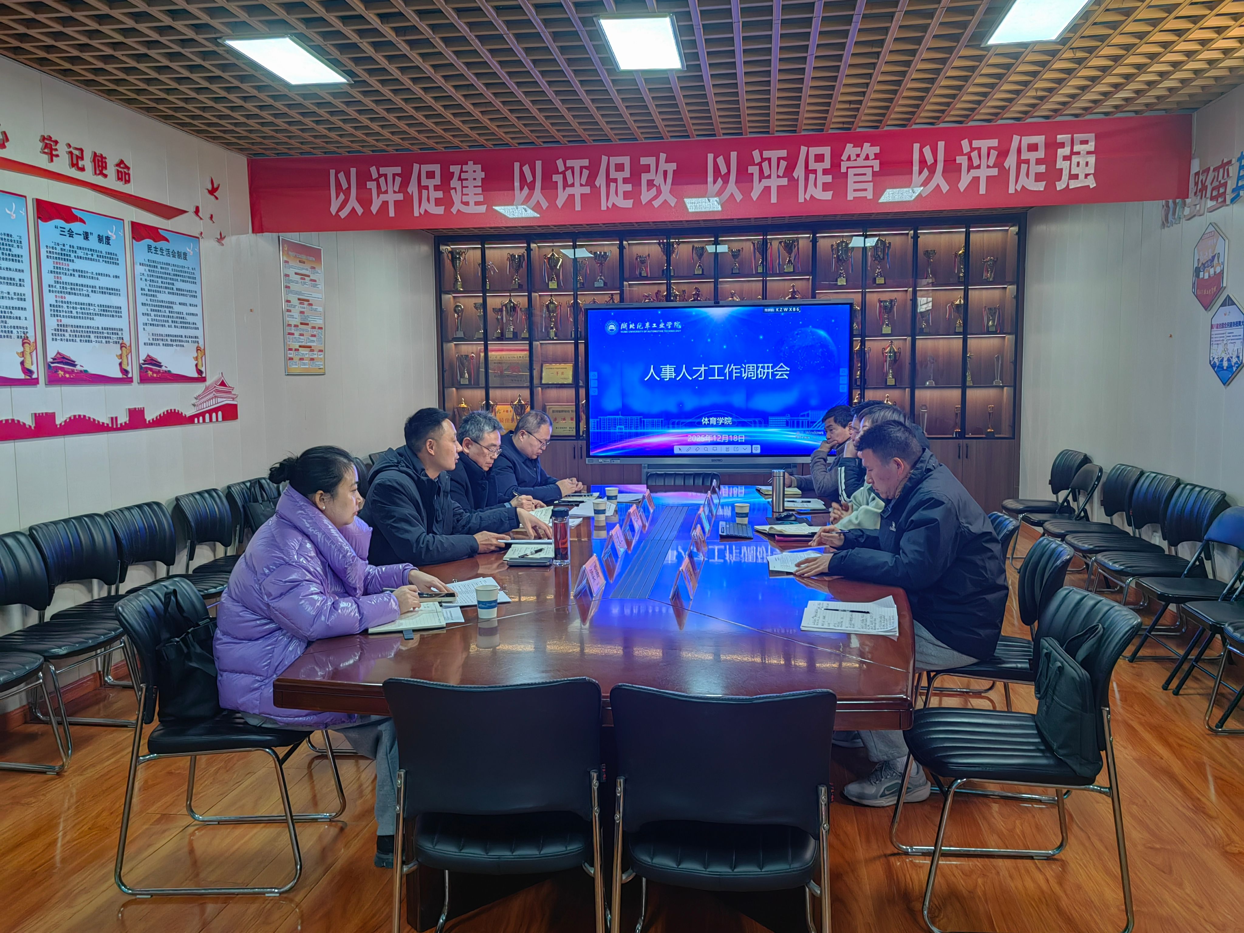 12月18日上午,校党委常委、党政办公室主任王文山、人事处处长朱战炜、副处长梁露、董圣滨一行赴体育学院开展人事人才工作调研。