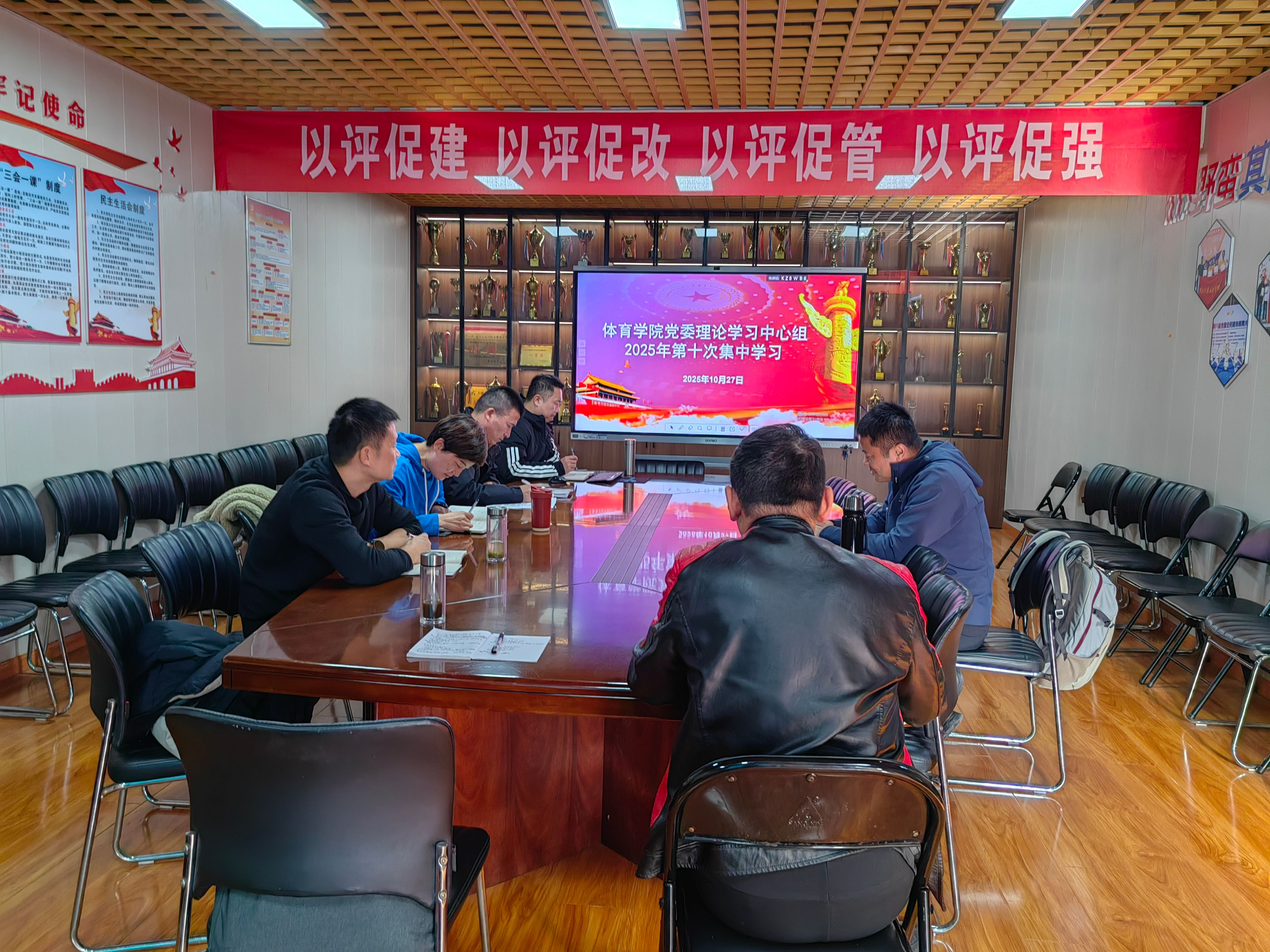 10月27日下午,体育学院党委在会议室开展10月份政治理论学习中心组学习会,熊玲书记主持会议,党委委员、教研室主任、办公室主任参加了本次学习。